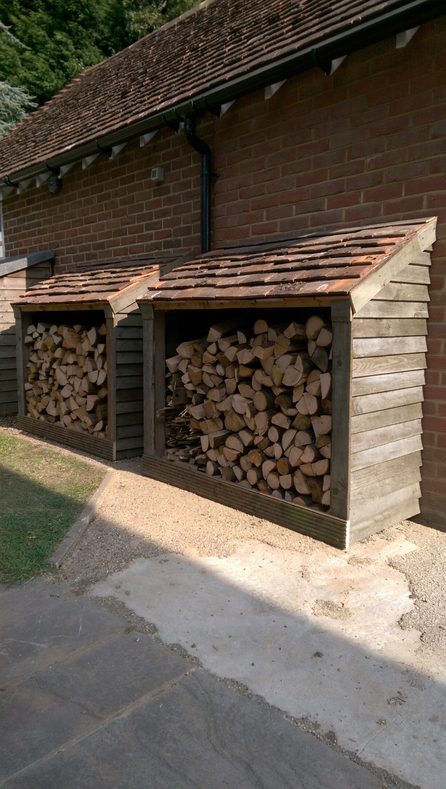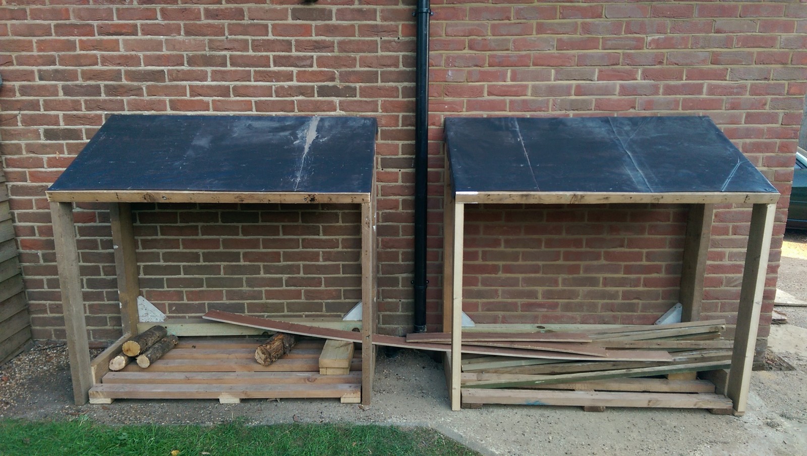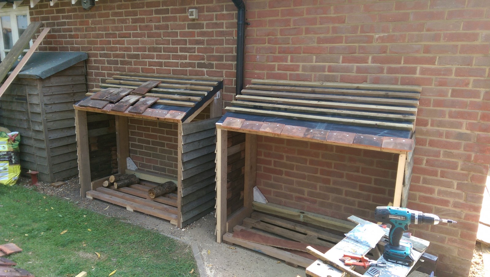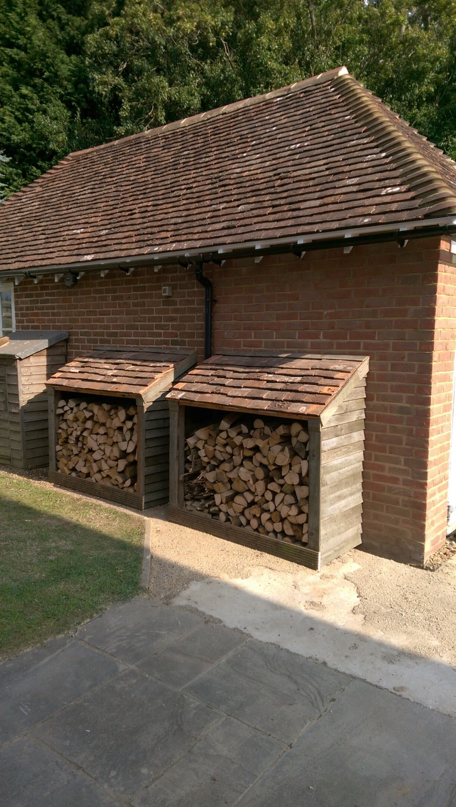 Fortunately there were just enough tiles and timber left from the garage extension to have a go at building some nice log stores.