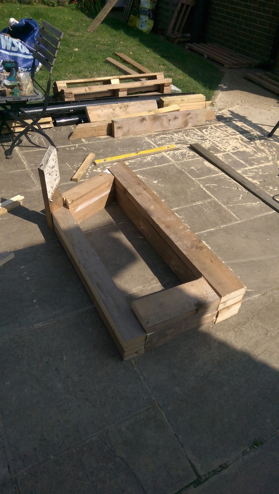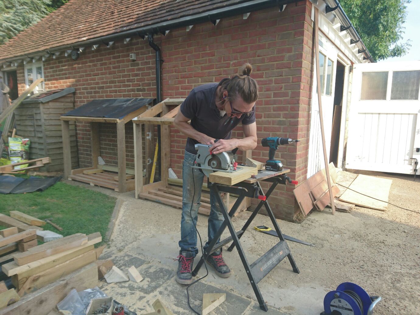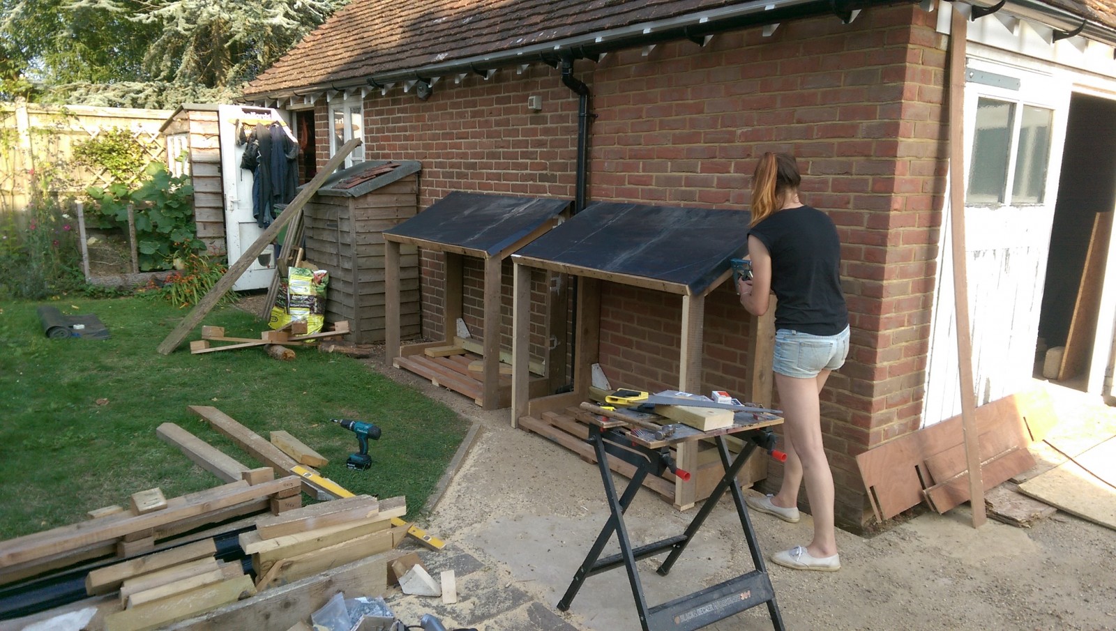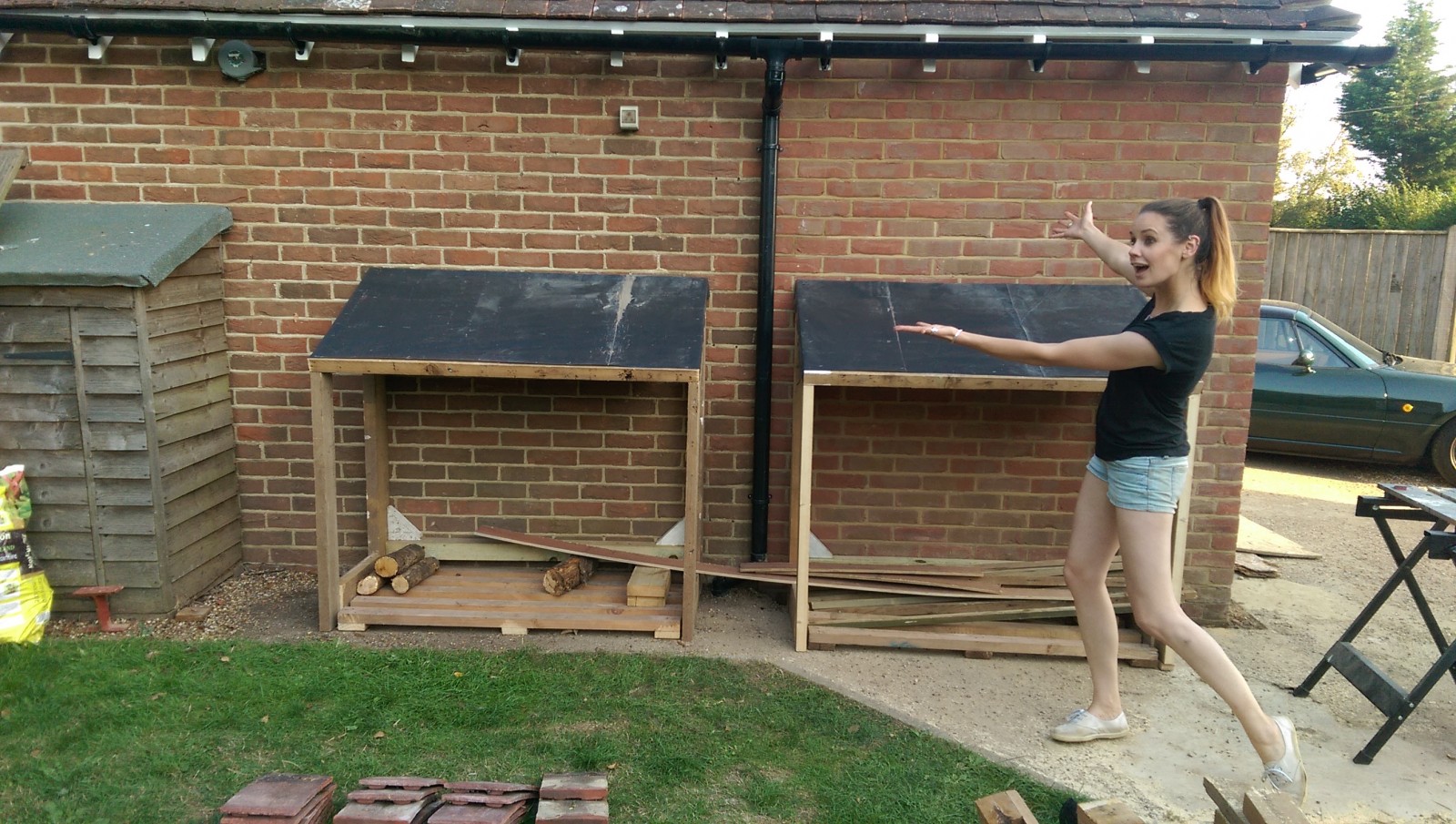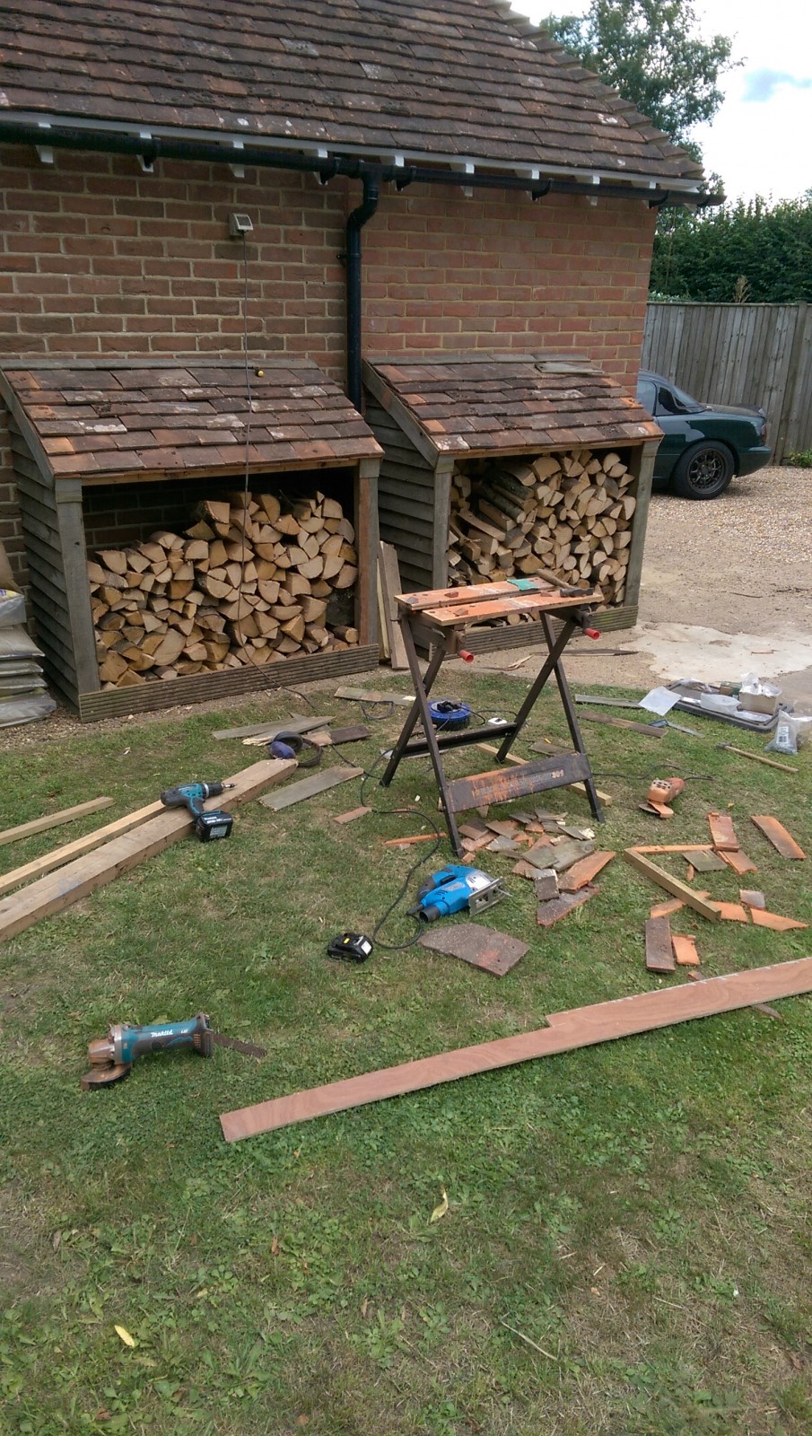 Fortunately there were just enough tiles and timber left from the garage extension to have a go at building some nice log stores.