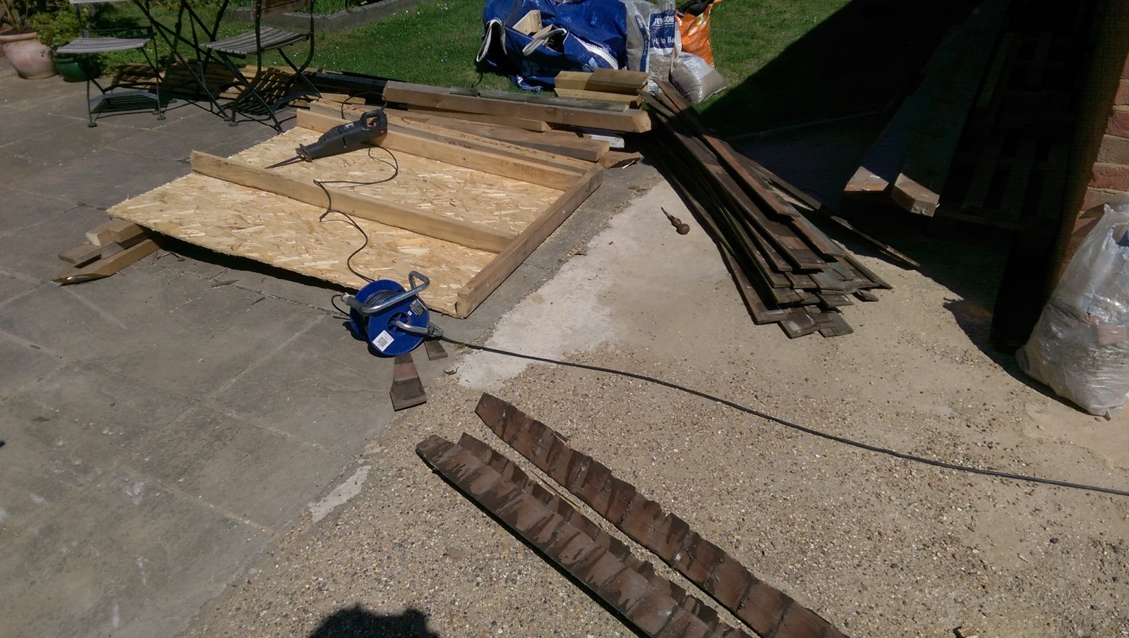and sorted through the old roof timbers, pulling out any nails.