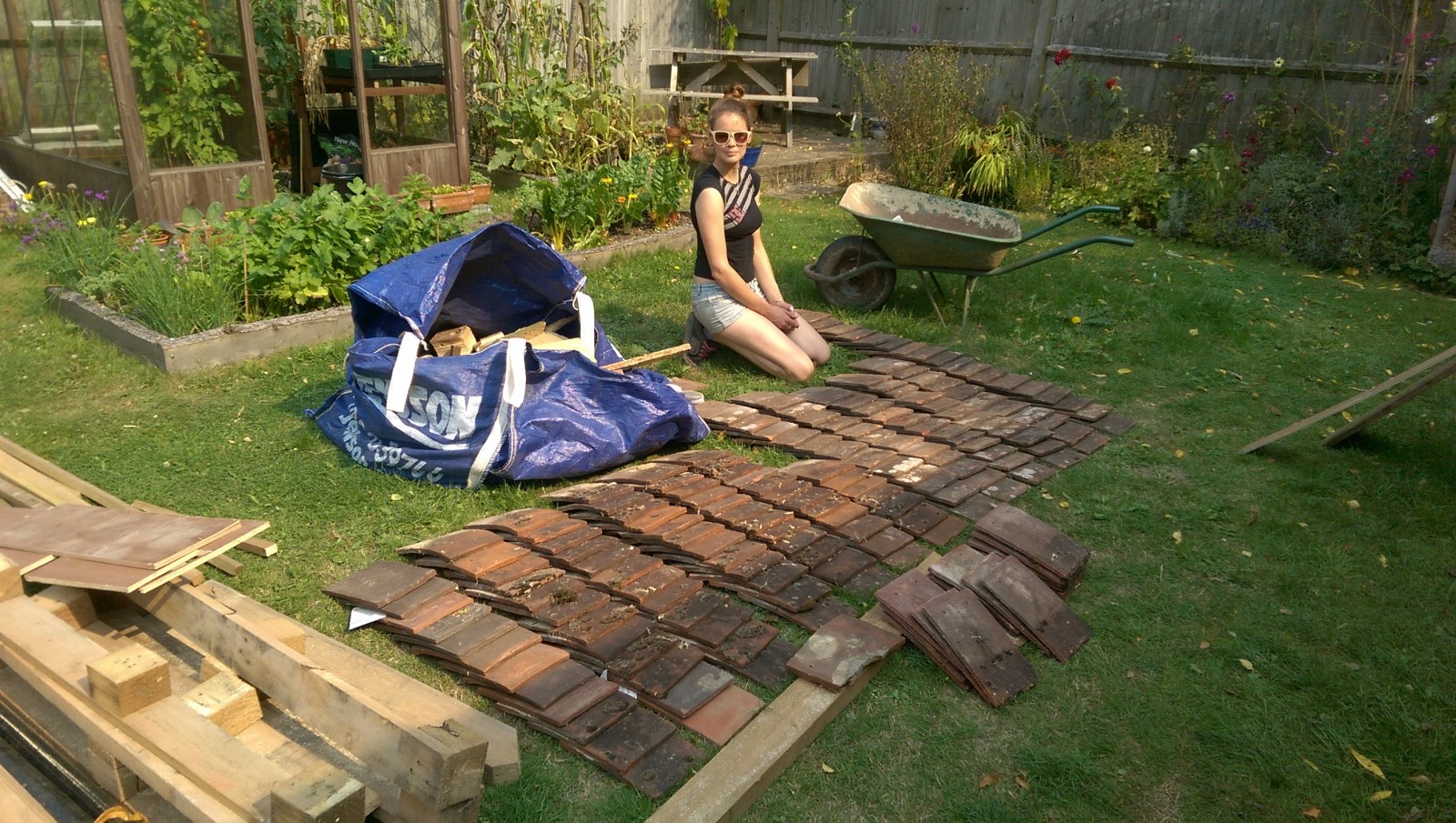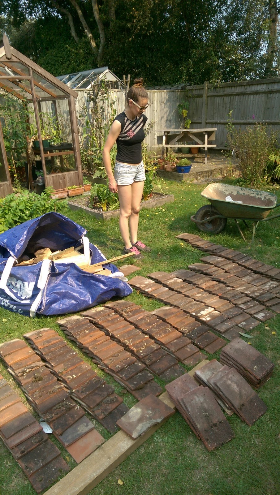 Jem sorting out the tiles we had left to make sure we got a nice mix of the best looking tiles.
