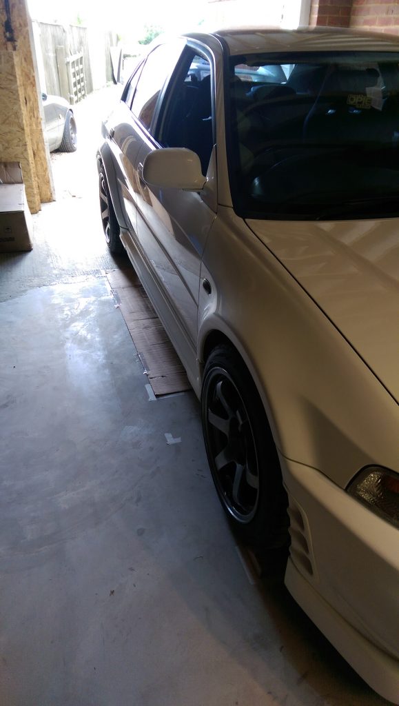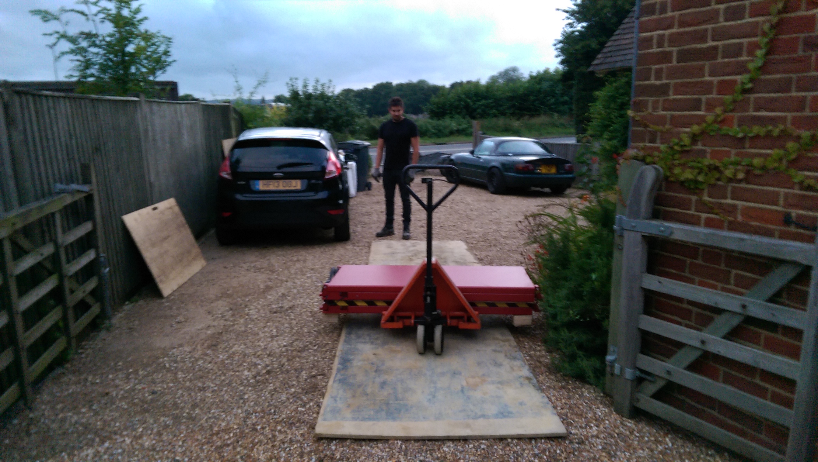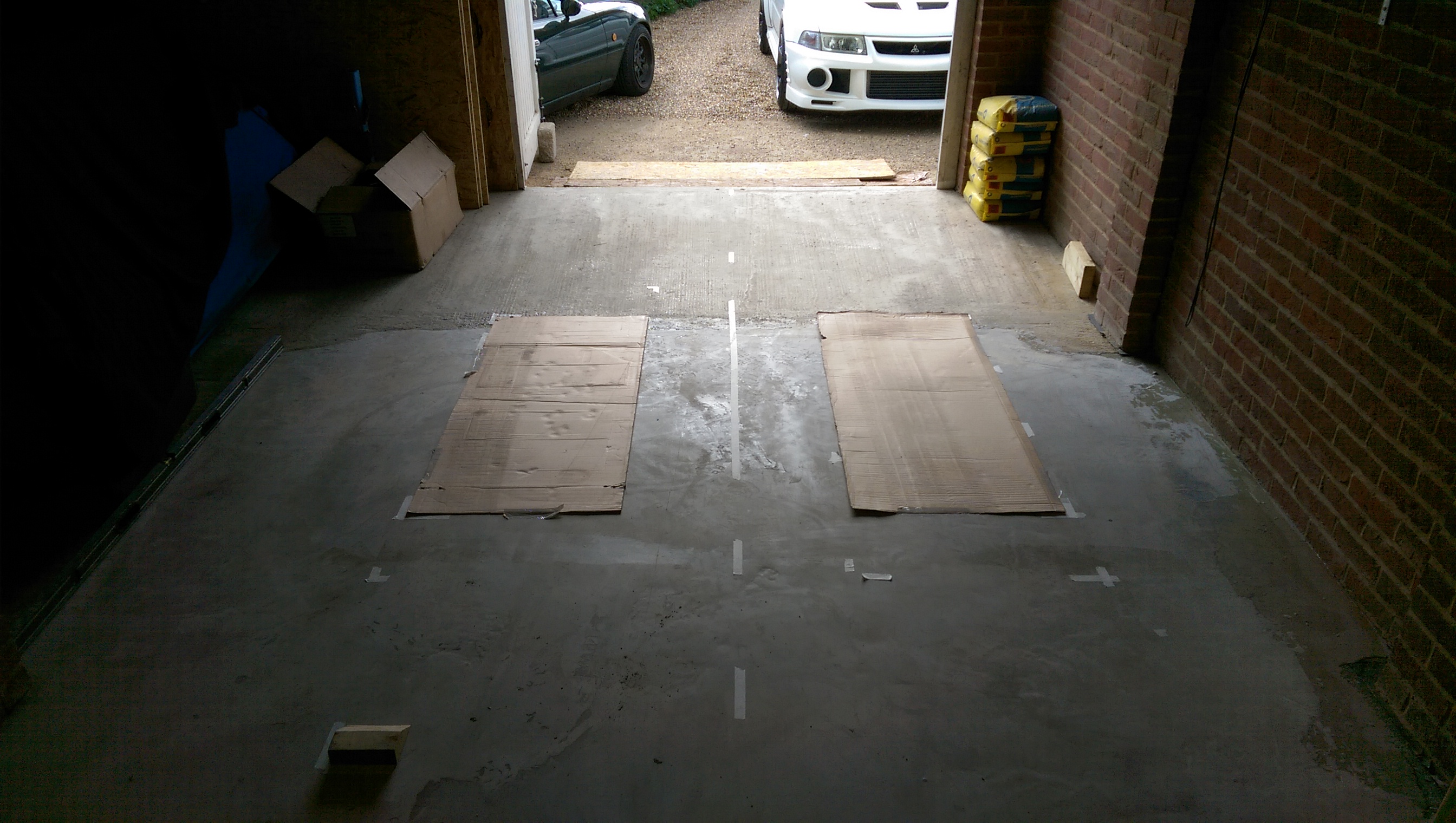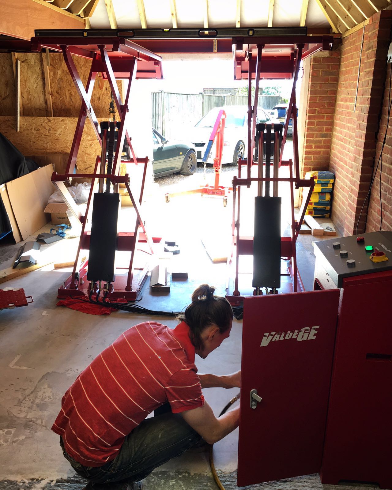 Having got the ridiculously heavy thing up the drive and into the garage the next job was to carefully plan where the platforms should be. The roof space to lift larger cars into or ones with stupid spoilers like the Evo’s becomes a bit tight so I needed to get this right.